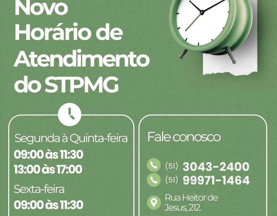 Novo horário de atendimento do STPMG
