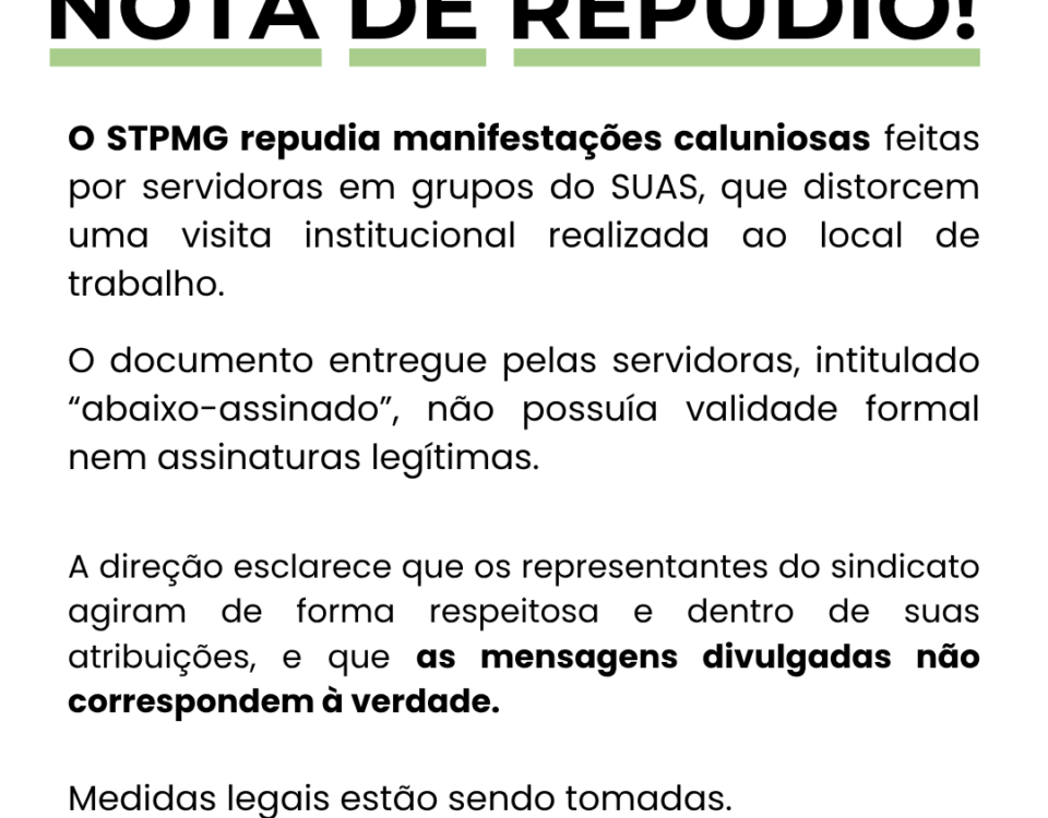 ❗️NOTA DE REPÚDIO ❗️ A direção do STPMG, no uso de suas atribuições, vem a público repudiar manifestação caluniosa de […]