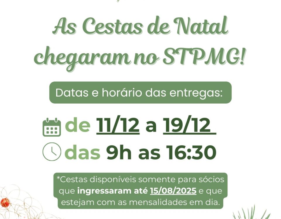 ⚠️ Atenção, associados! Excepcionalmente na quarta-feira, 17/12, o STPMG terá atendimento estendido das 9h às 19h para retirada das cestas […]