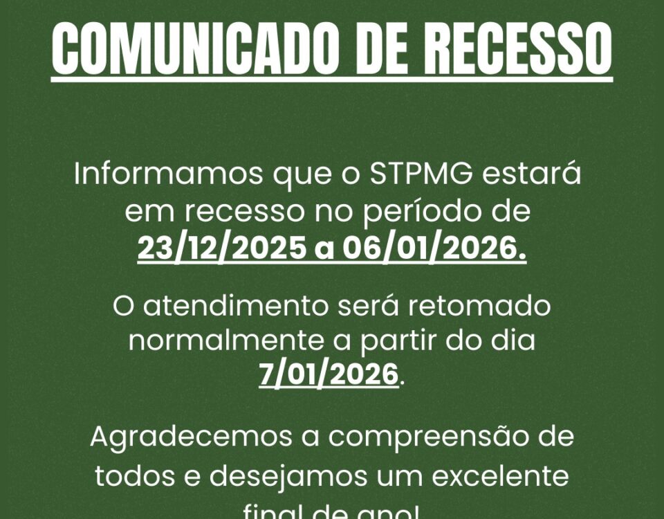 Informamos que o STPMG estará em recesso no período de 23/12/2025 a 06/01/2026, com retorno do atendimento normal a partir […]