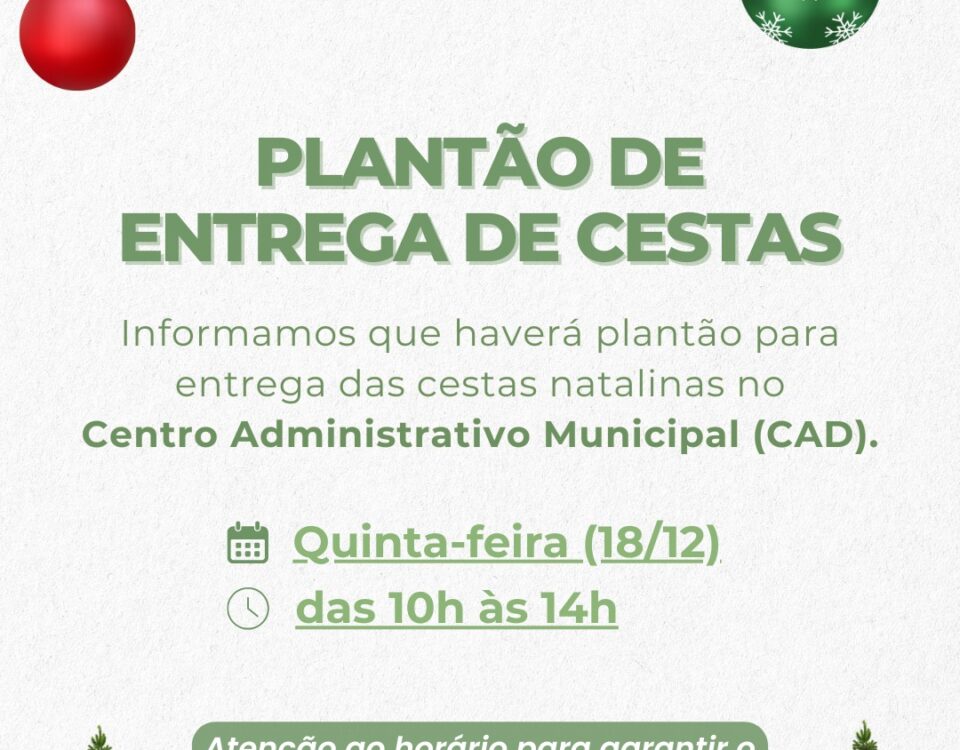 O STPMG informa que haverá plantão para a entrega das cestas natalinas no Centro Administrativo Municipal (CAD). 📅 Quinta-feira, 18/12⏰ […]