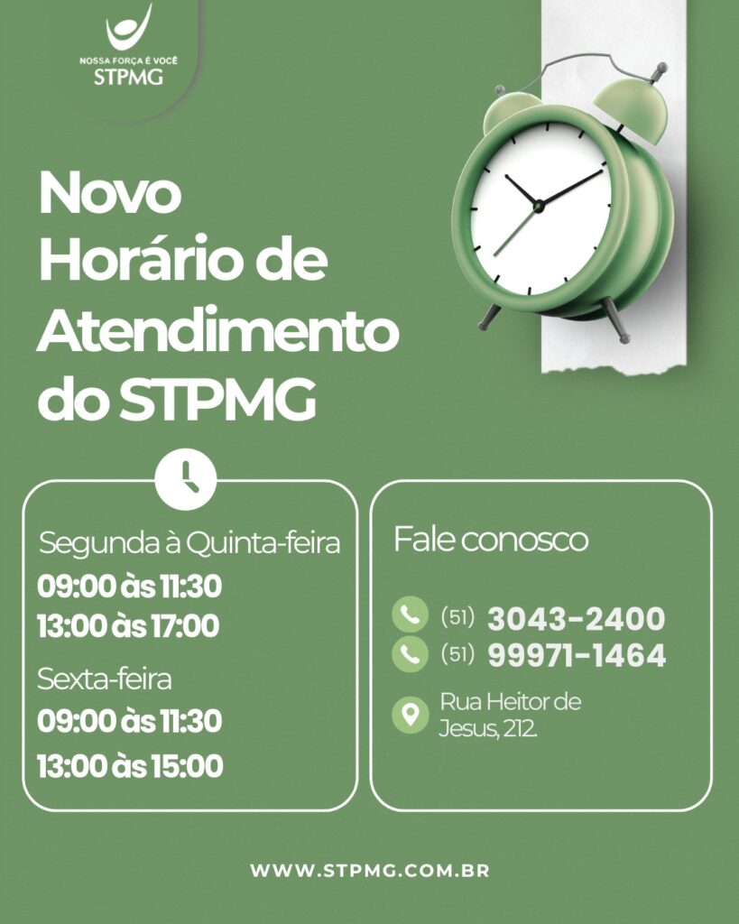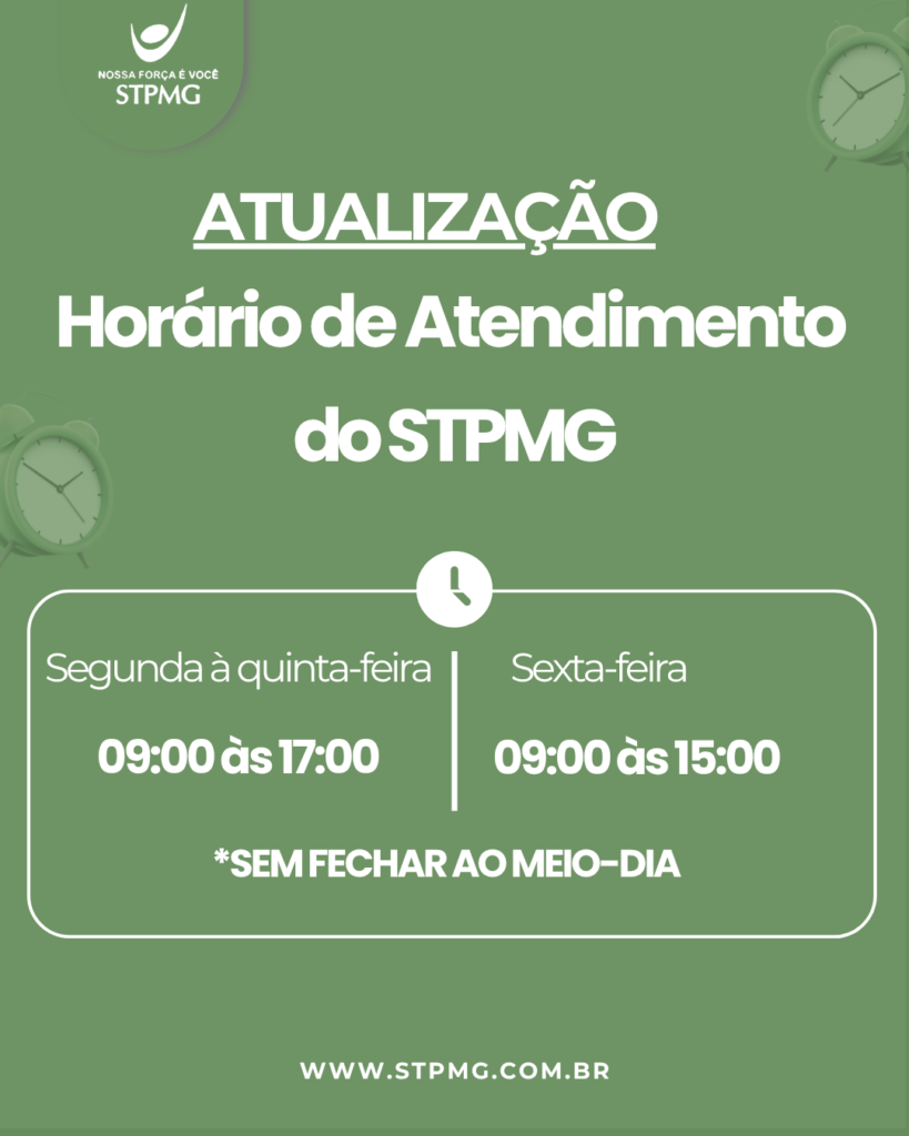 Novo horário de atendimento do STPMG