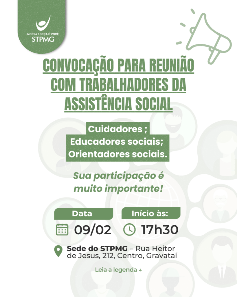 CONVOCAÇÃO PARA REUNIÃO COM TRABALHADORES DA ASSISTÊNCIA SOCIAL