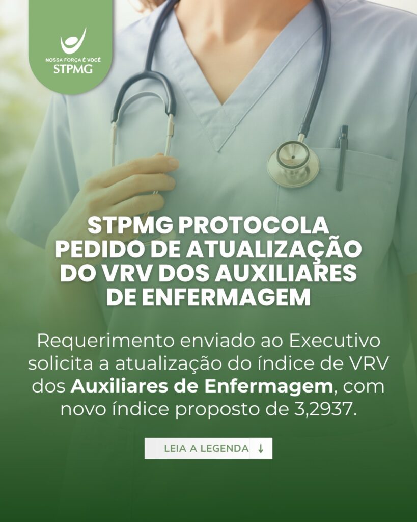 STPMG protocola pedido de atualização do VRV dos Auxiliares de Enfermagem