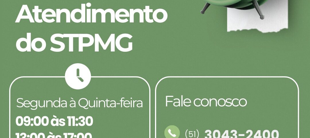 Informamos que o STPMG terá novo horário de atendimento em sua secretaria.